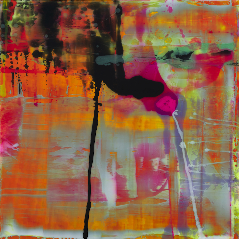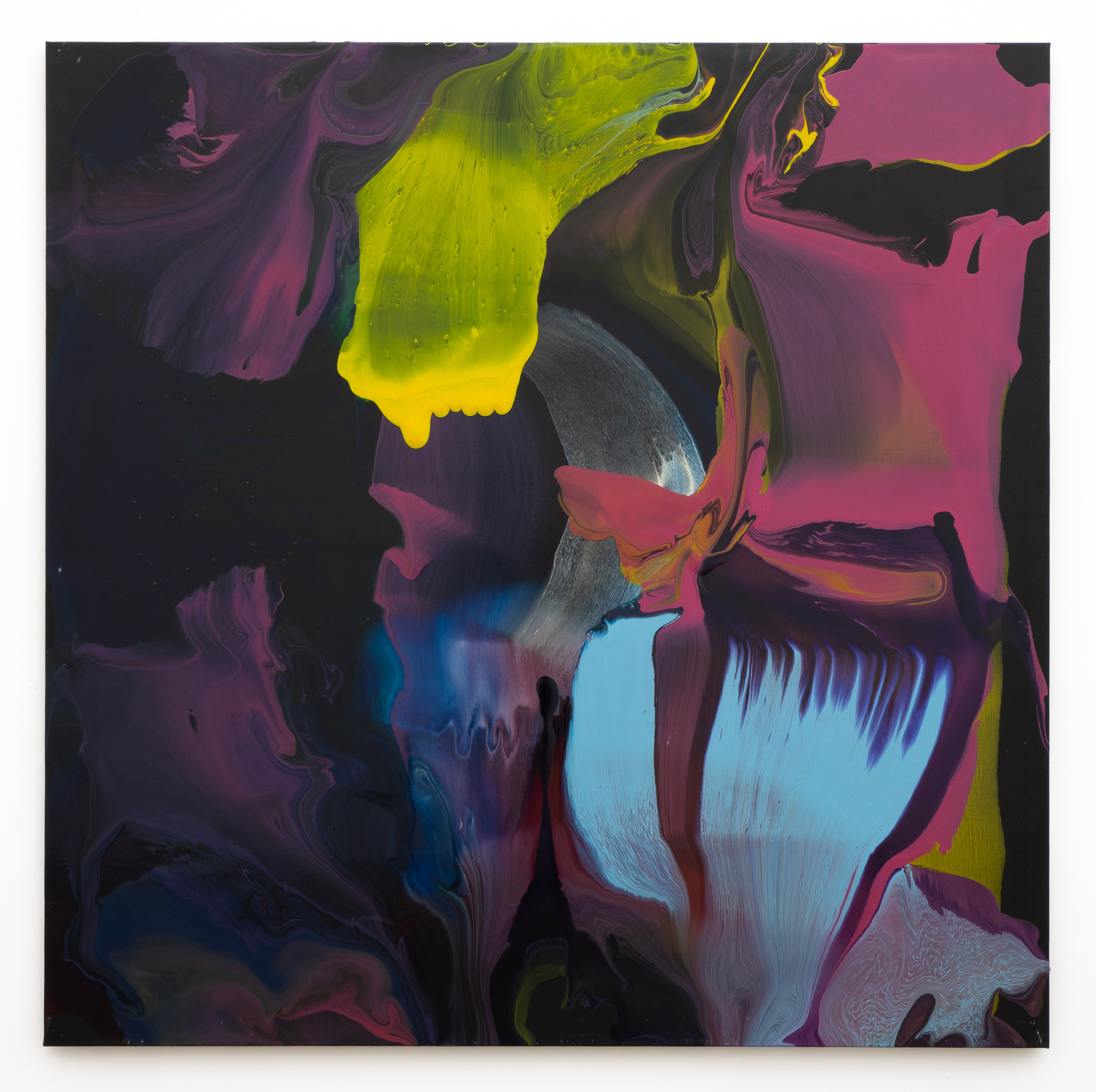 Dale Frank, 'She swore blind deaf love, she would never feel for anyone else, what she felt for me, but it only lasted 6 days', 2022. Colour pigments in easycast resin, epoxyglass, on perspex, 200 x 200 cm.