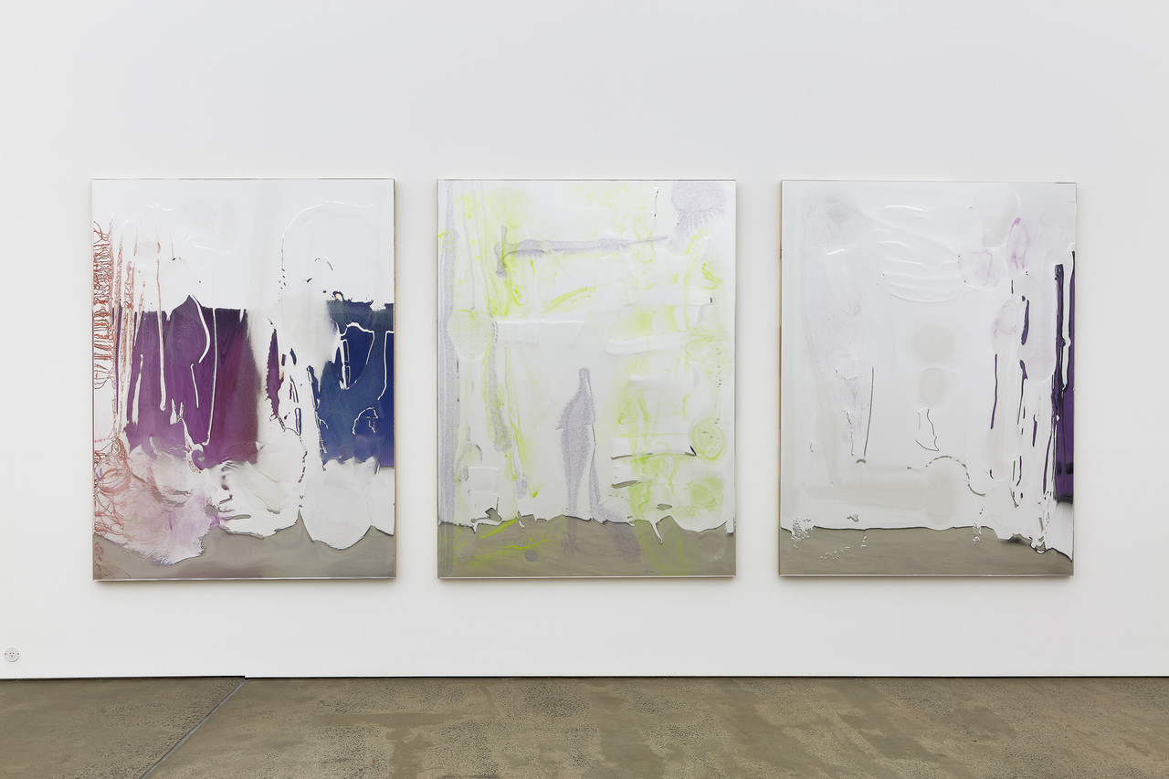 Dale Frank, 'Coma 7 dead birds and tea bag flavoured egg rolls', 2017. Liquid glass, glitter, spray paint on perspex, 200 x 150 cm.