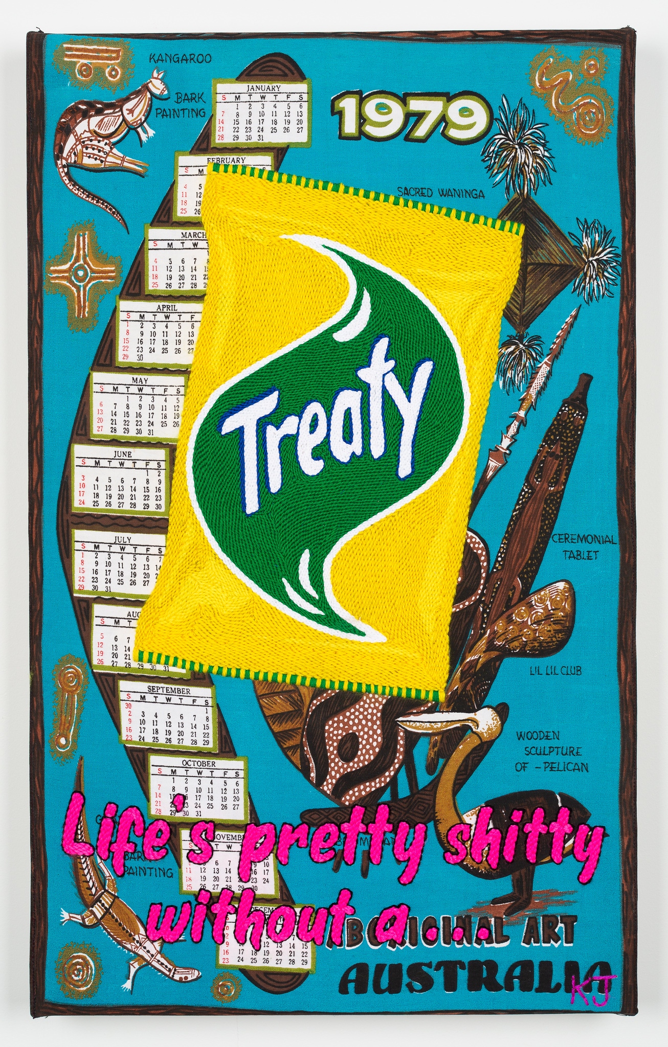 Kait James, 'Lucky Country', 2021. Wool and cotton on printed cotton, 76 x 46 x 7 cm. Photography: Christian Capurro.