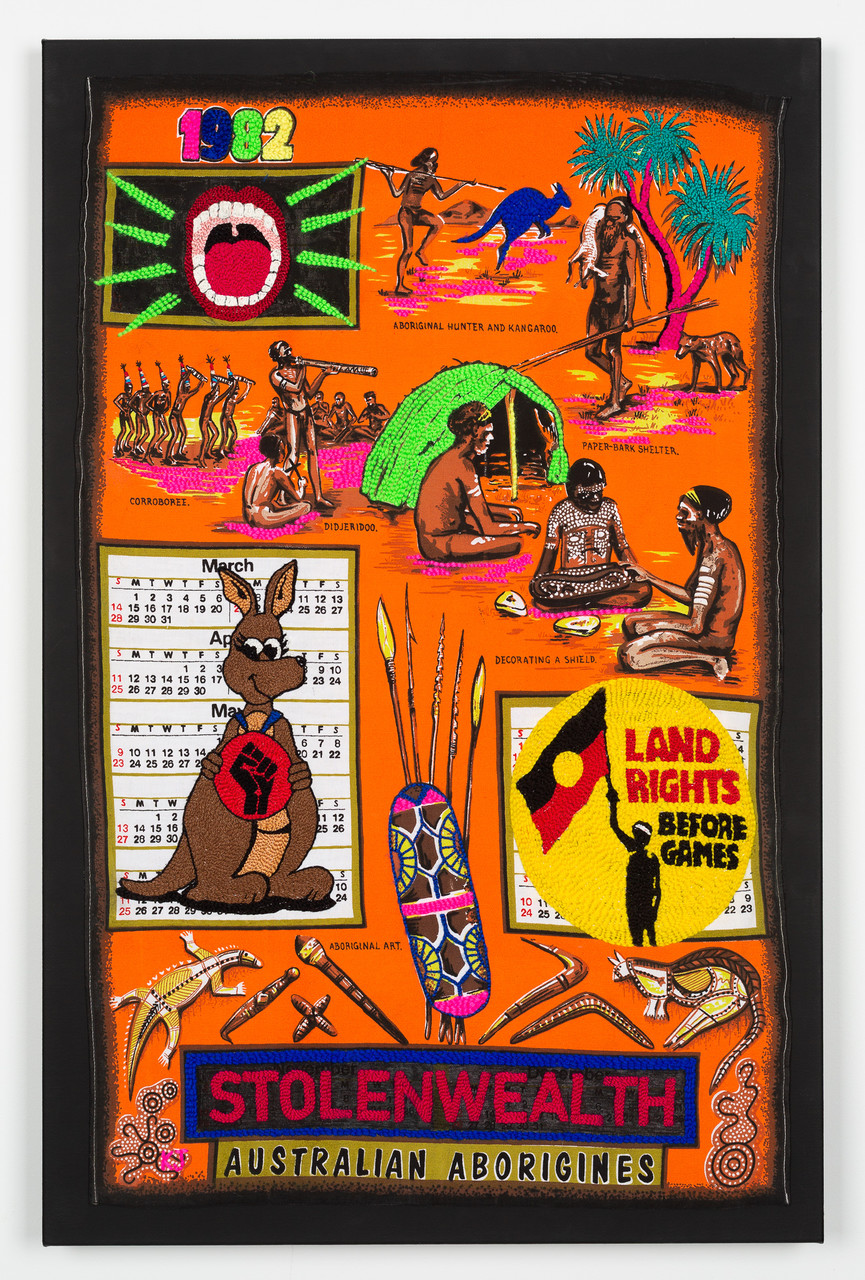 Kait James, 'Stolenwealth', 2021. Wool and cotton on printed cotton, 76 x 46 x 7 cm. Photography: Christian Capurro.