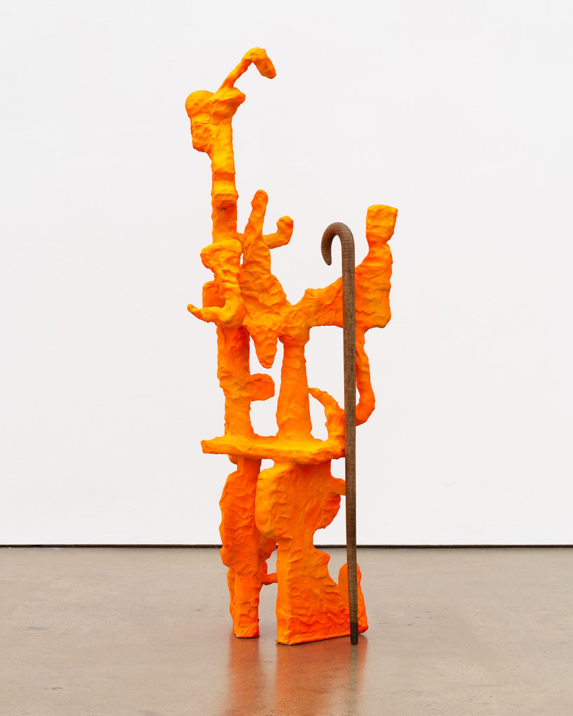 Nabilah Nordin, 'The Tie and the Undercoat', 2022. Wood, mouldable plastic, epoxy modelling compound, spray paint, walking stick, 123 x 45 x 36 cm.