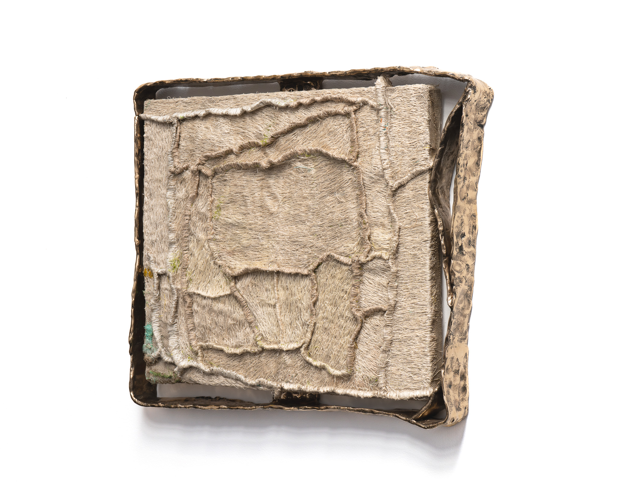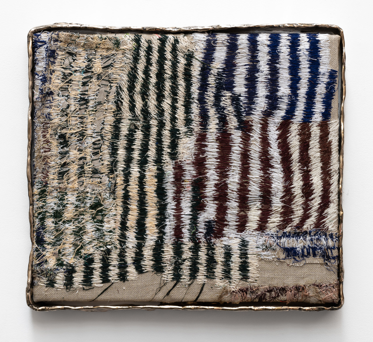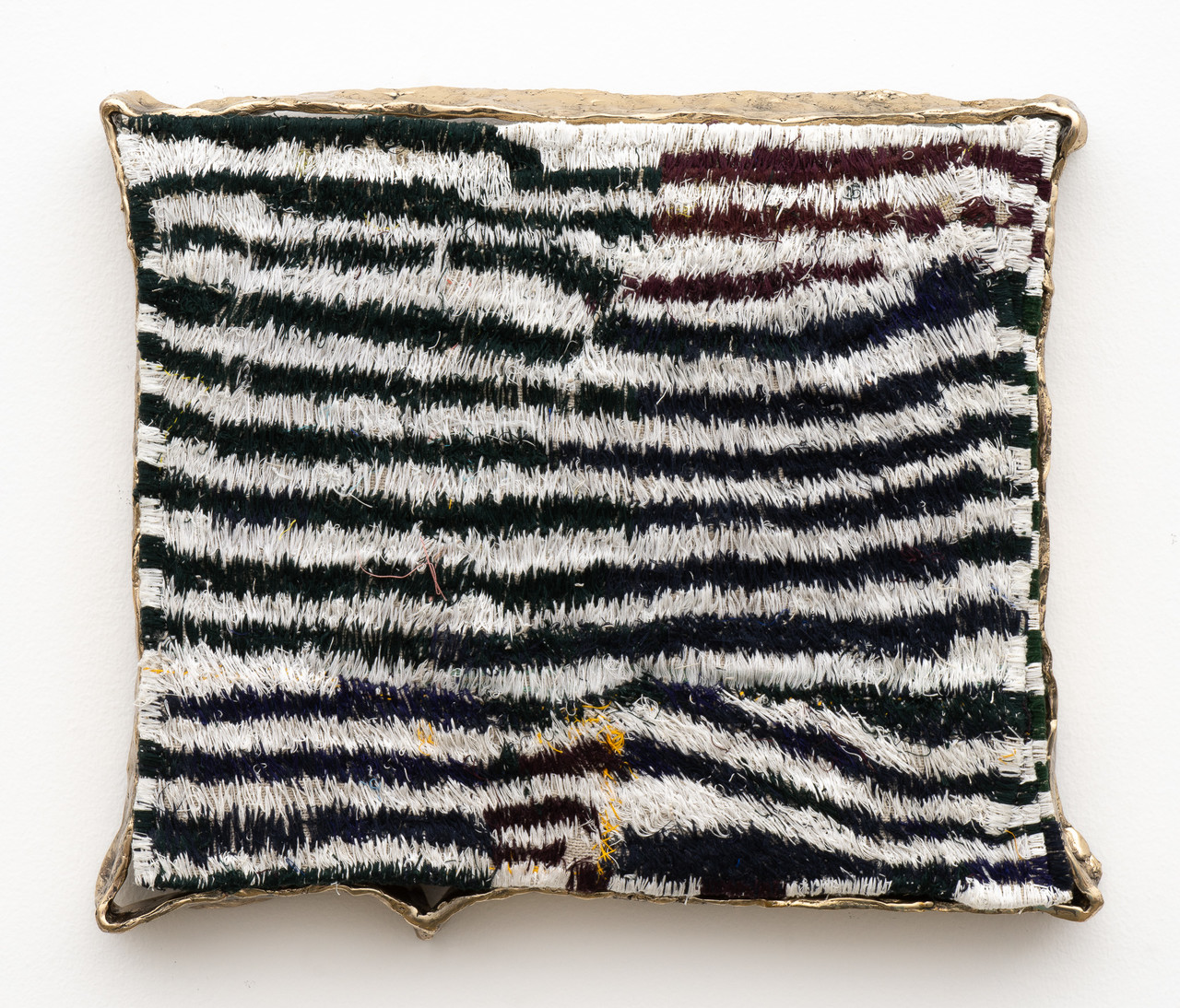 Teelah George, 'Poem', 2021. Thread, linen, bronze. 35 x 42 x 4.5 cm.