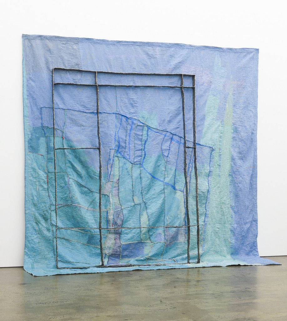 Teelah George, 'Blue biro', 2018-19. Thread on linen with bronze, 250 x 220 cm.