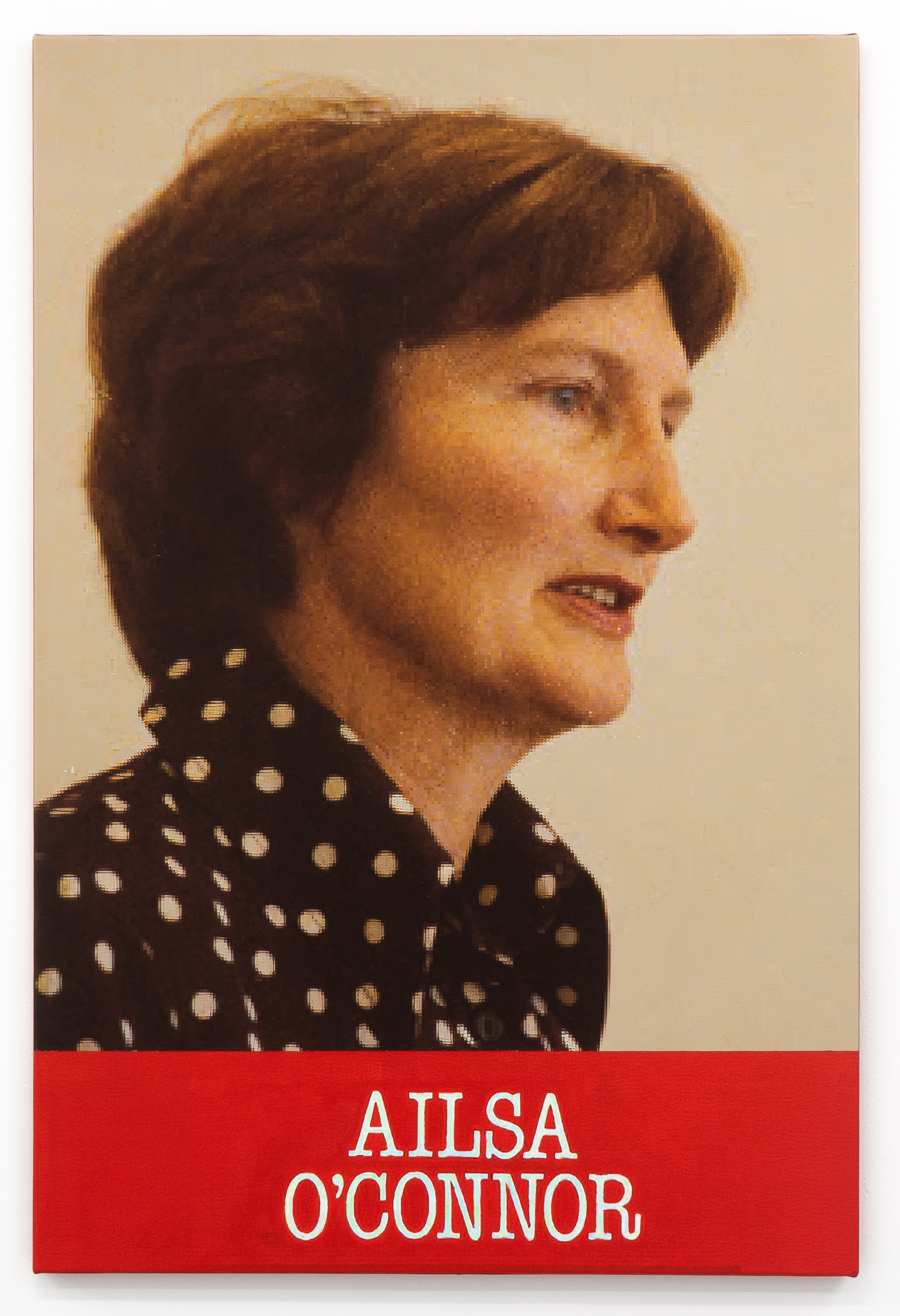 A.D.S Donaldson, 'Ailsa O'Connor', 2022. Ink, ribbon and synthetic polymer paint on canvas, 137 x 92 cm.
