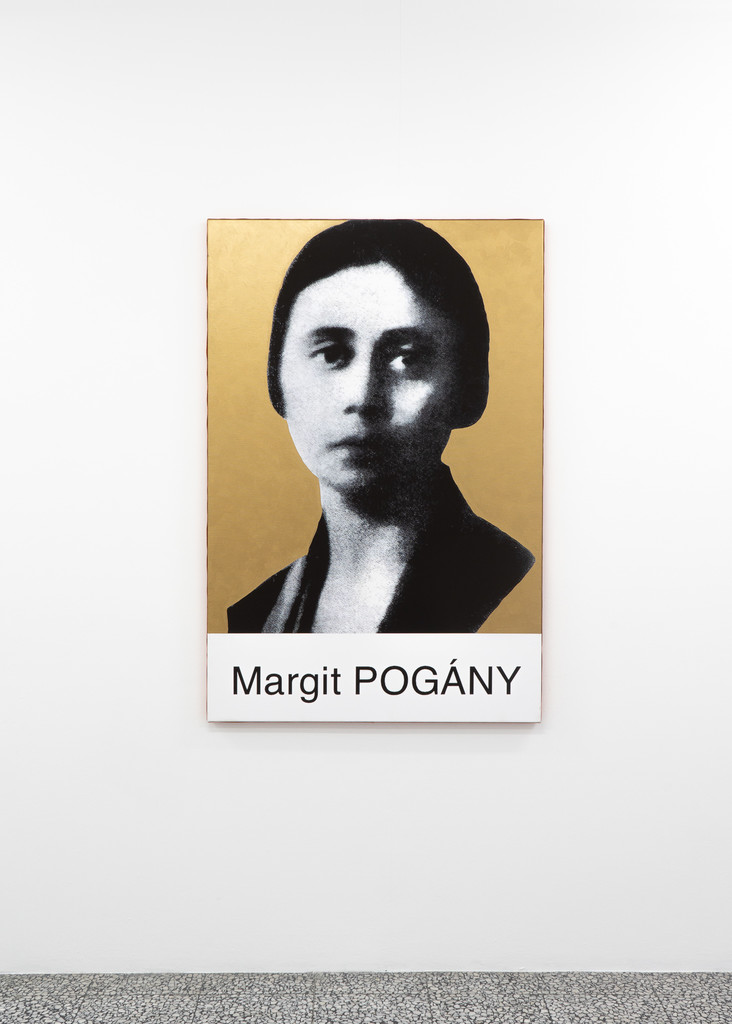 A.D.S Donaldson, 'Margit Pogány', 2022. Ink, ribbon and synthetic polymer paint on canvas, 137 x 92 cm.