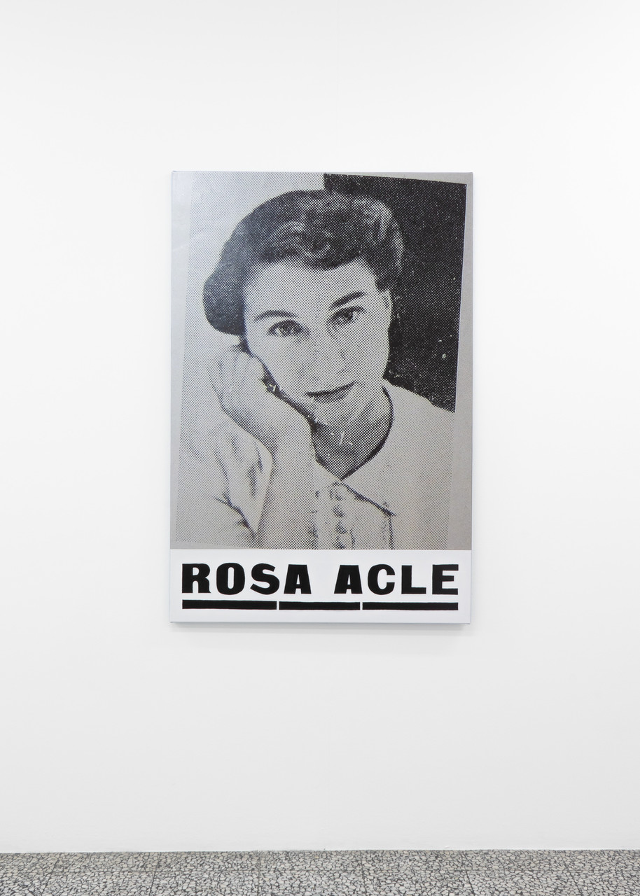 A.D.S Donaldson, 'Rosa Acle', 2022. Ink, ribbon and synthetic polymer paint on canvas, 137 x 92 cm.