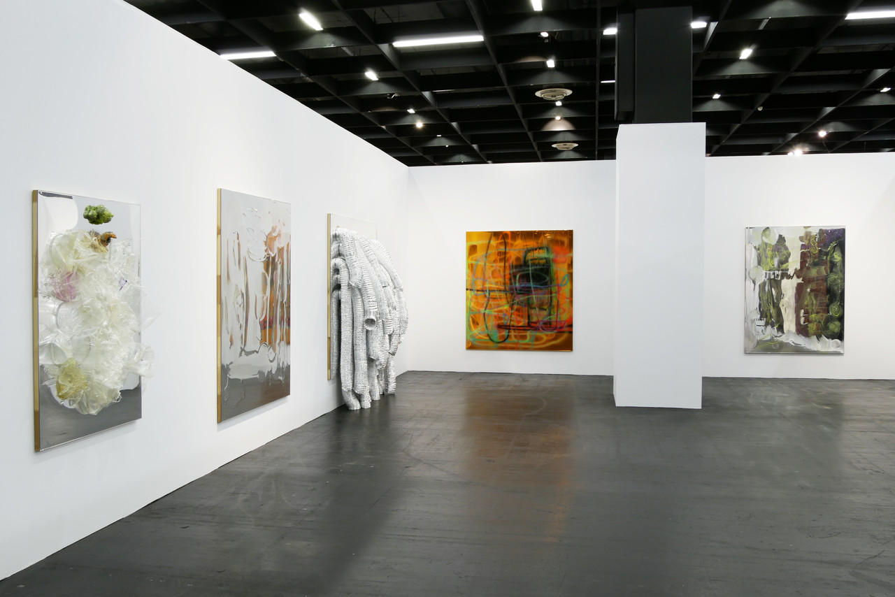 Dale Frank, 'Coma 7 dead birds and tea bag flavoured egg rolls', 2017. Liquid glass, glitter, spray paint on perspex, 200 x 150 cm.