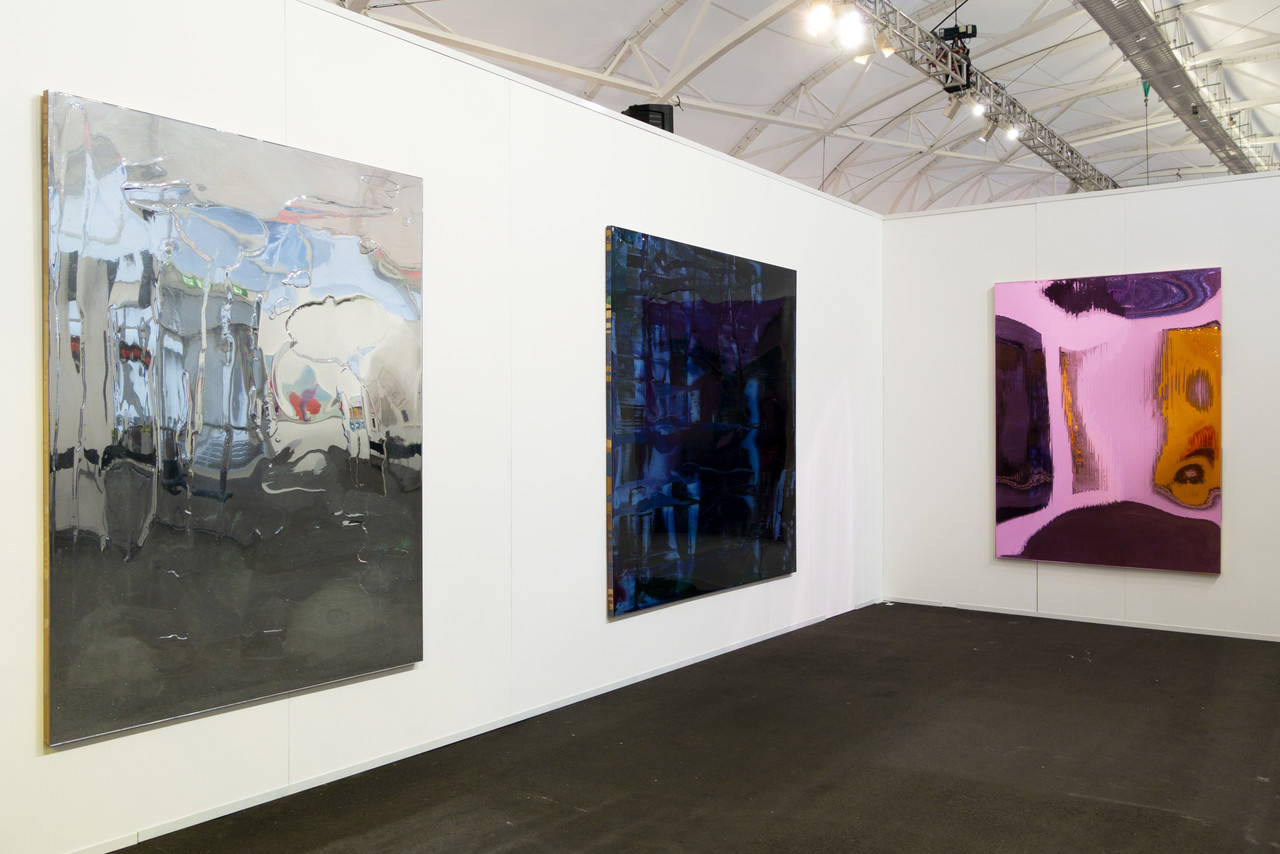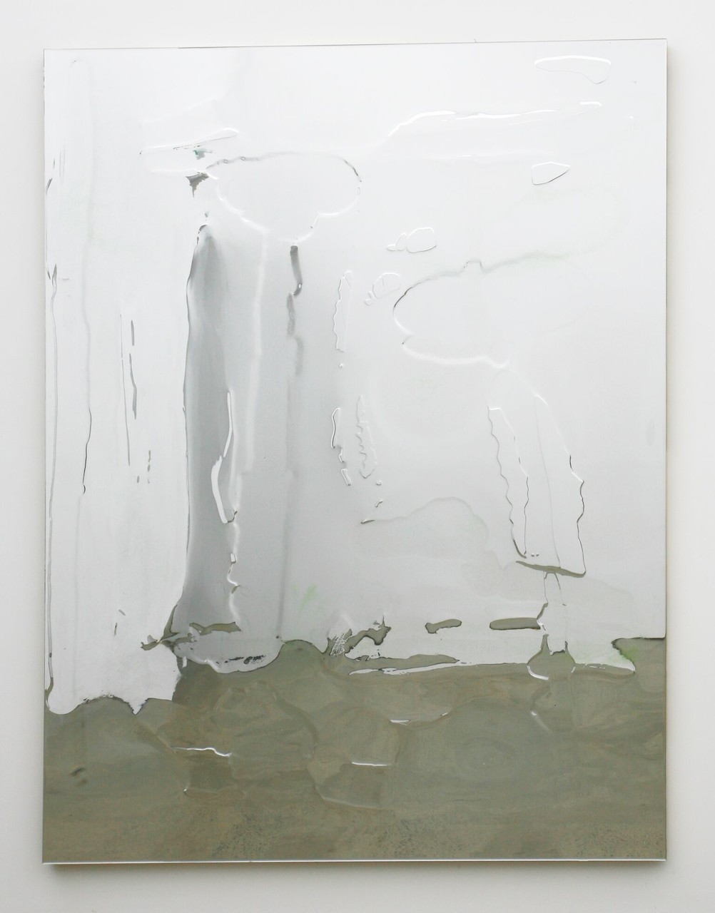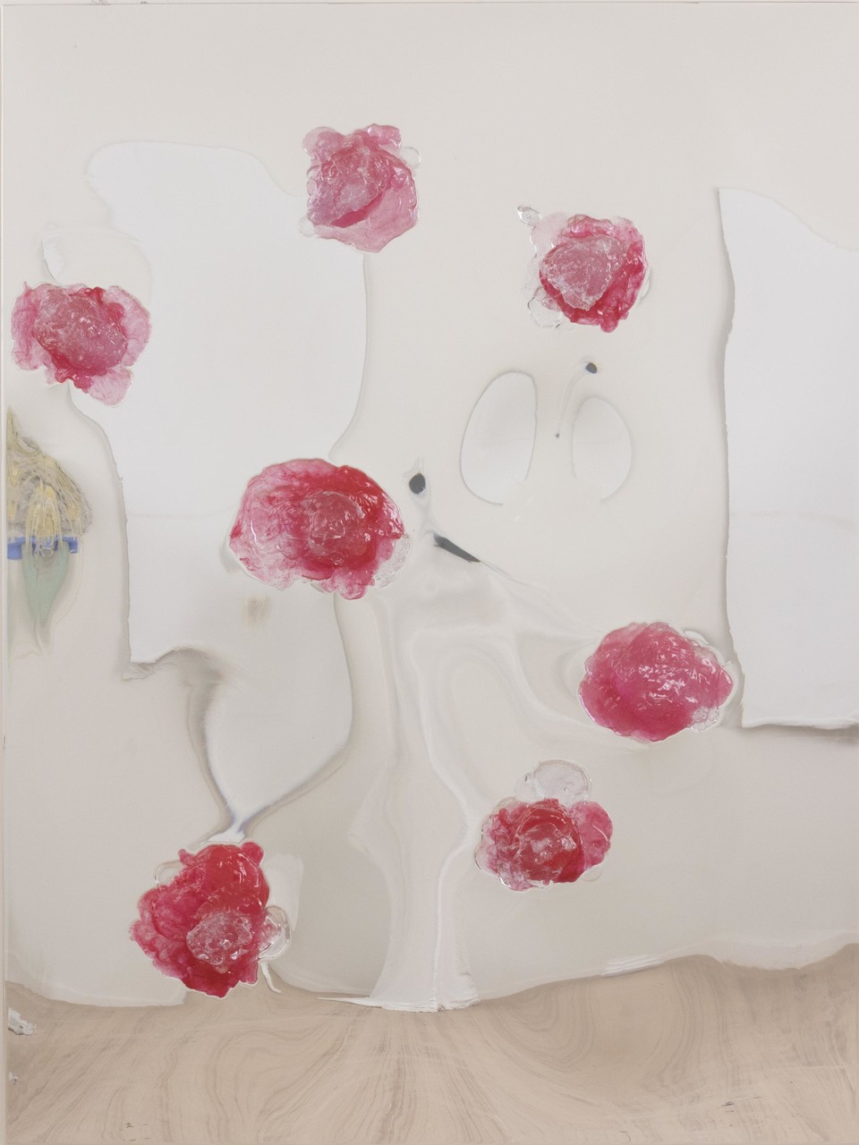 She mostly started a conversation with I am your wife, 2015, varnish and varnish resin hardener on liquid glass on perspex, 200 x 150 cm