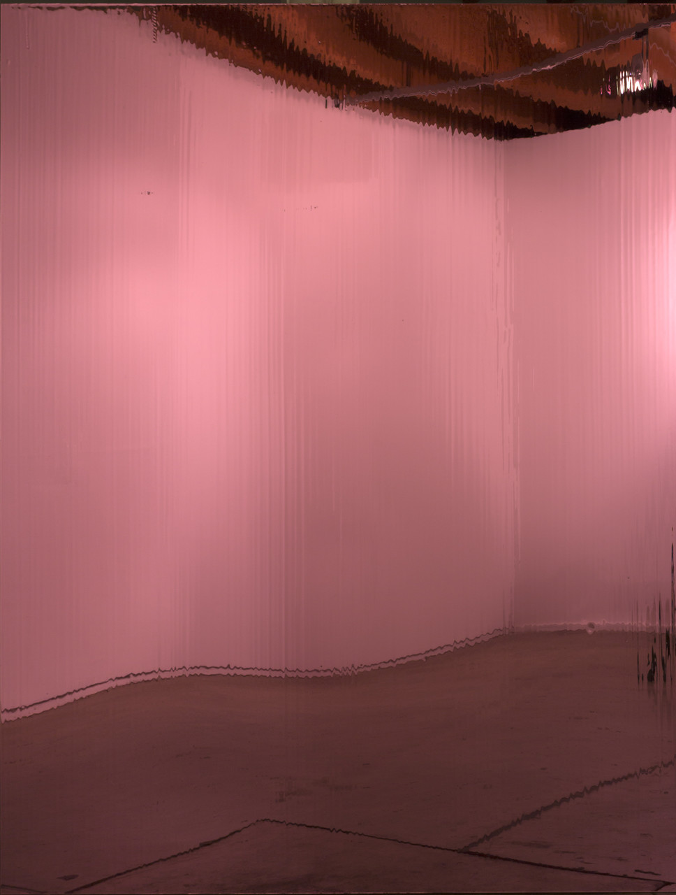 Coma 5 waiting for the gas man, 2017, Liquid glass, glitter, spray paint on perspex, 200 x 150 cm