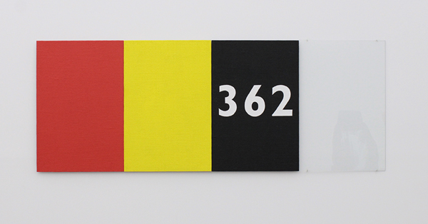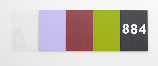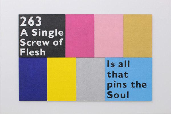 Janet Burchill, Collected Works of Emily Dickinson (362), 2015, Synthetic polymer paint on hessian, glass, 4 panels, 64 x 92 cm each, 248 cm overall