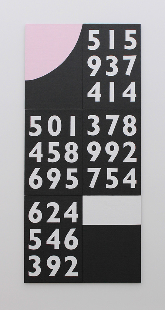Janet Burchill, Collected Works of Emily Dickinson (884), 2015, Synthetic polymer paint on hessian, glass, 5 panels, 64 x 92 cm each, 320 cm overall