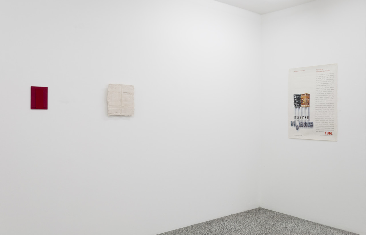 Jordan Halsall, Our Childhood (Reddit), 2018, Hand embossed found reddit post over original 1969 Roy Kuhlmann designed IBM poster , 91.5 x 64.5 cm