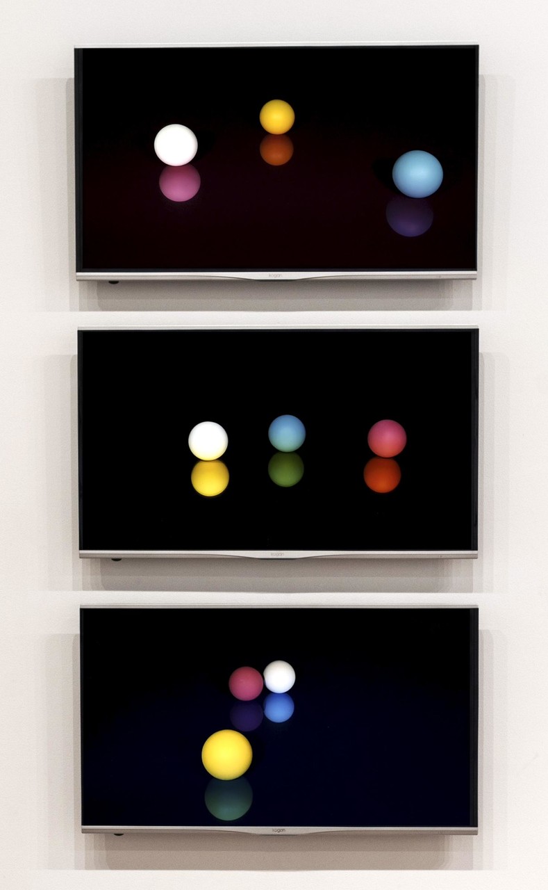 Ping Pong Balls on Cyan, Magenta and Yellow Mirrors, 2016