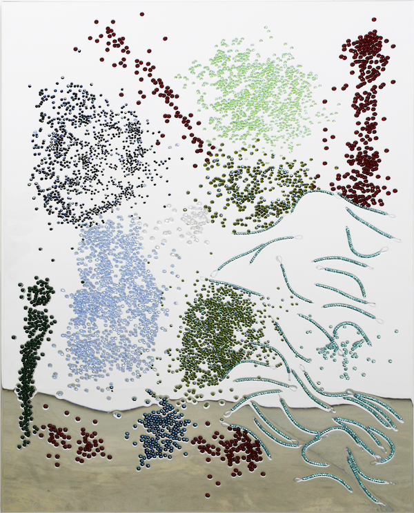 Liquid glass, glitter, spray paint on perspex,