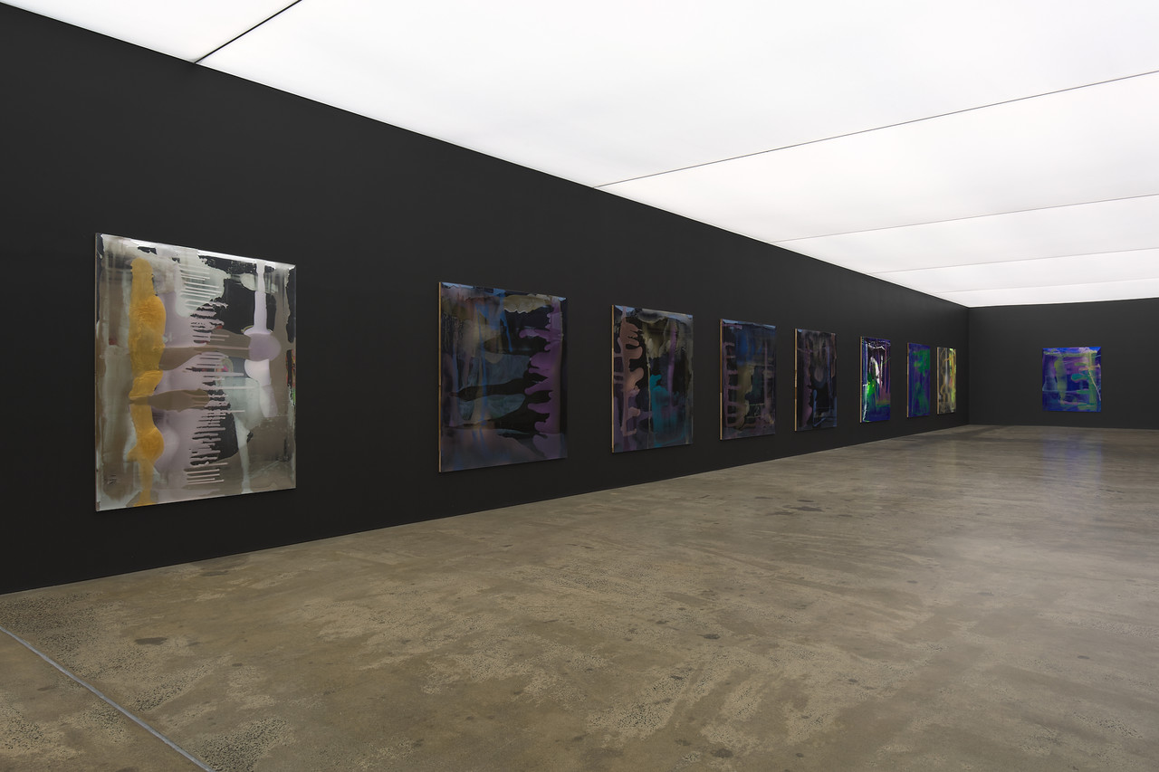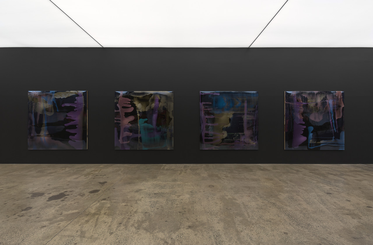 'After leaving Belmont Boys High School Lionel had a corpus cavernous and corpus spongiosum procedure done so he could play professionally for the Lake Macquarie Dockers AFL 4', 2020, colour shift pour acrylic, Epoxyglass, on perspex, 150 x 100 cm.