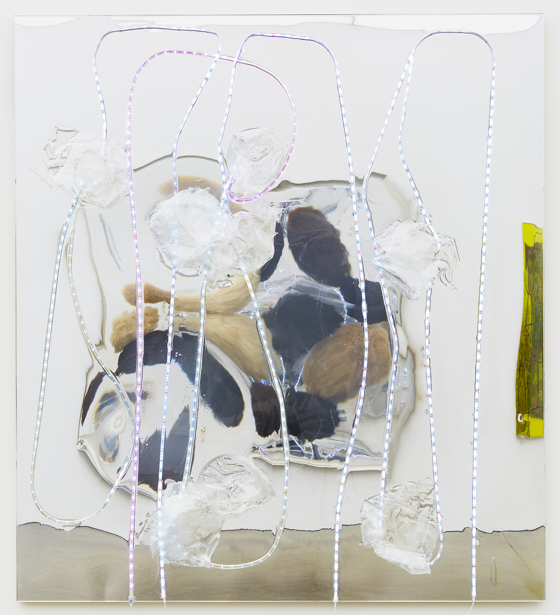 Dale Frank, He picked up Abdul Baatin when he was late night packing shelves in Coles Braybrook, LED light strip controlled by remote, cast epoxy shapes, epoxyglass on perspex, 200 x 180 cm