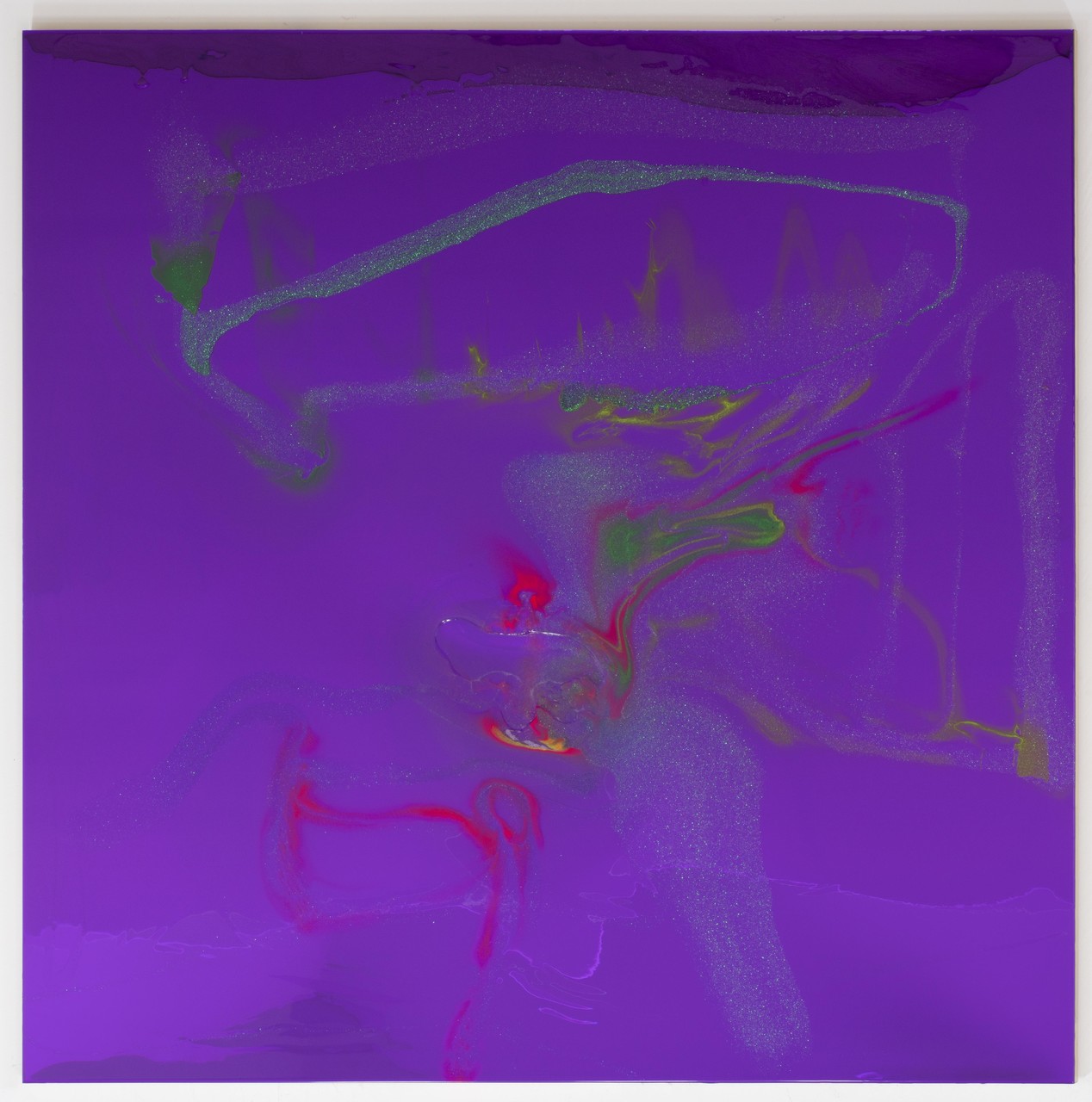 Dale Frank, She made a nice income out of blackmailing her ex-boyfriends, 2019, glitter, epoxyglass, on perspex, 200 x 200 cm