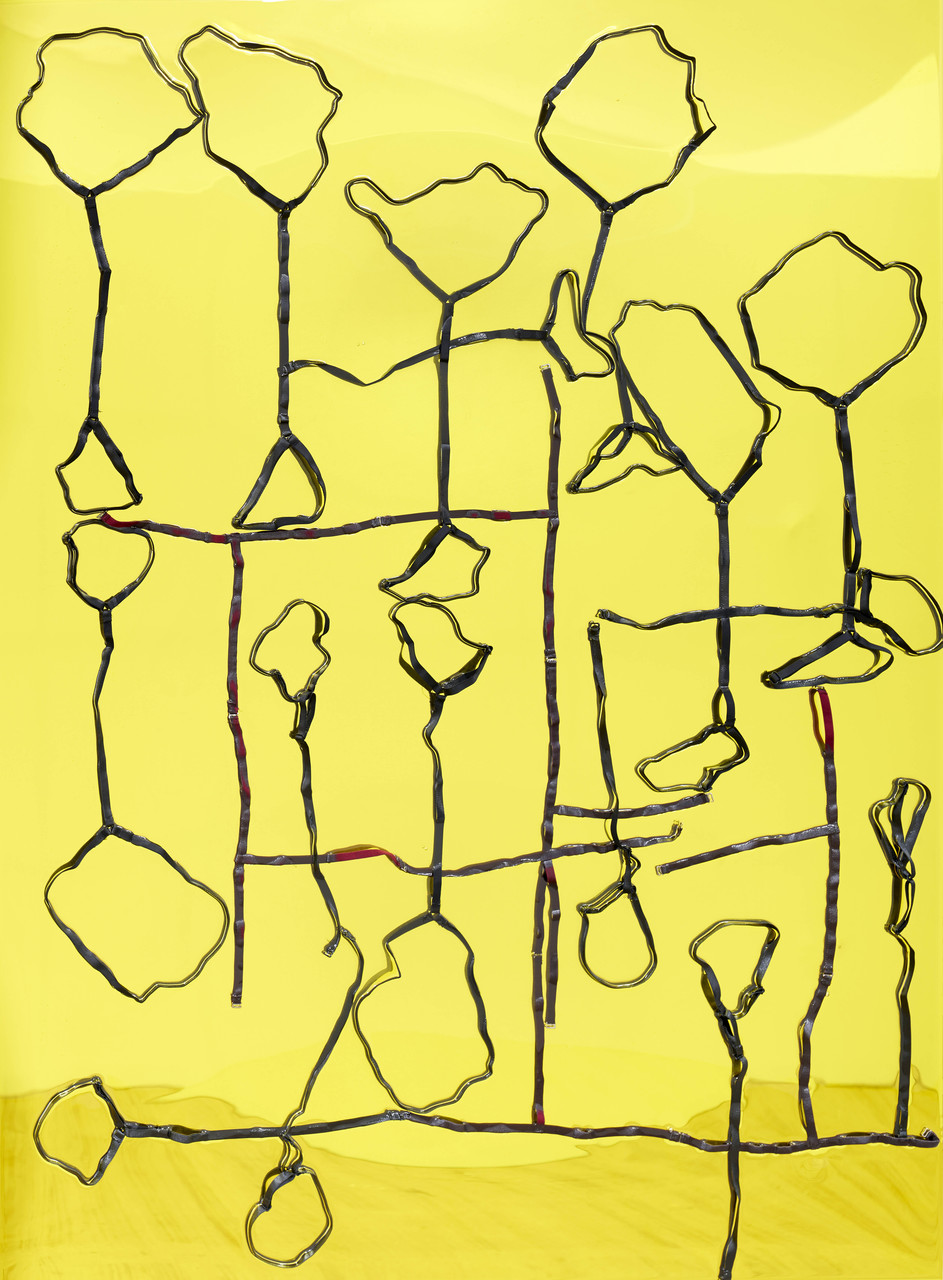 Dale Frank, She thought it was her personality and was relieved to find out it was just a Viral Infection, 2019, Elastic garters, epoxyglass on perspex, 160 x 120 cm