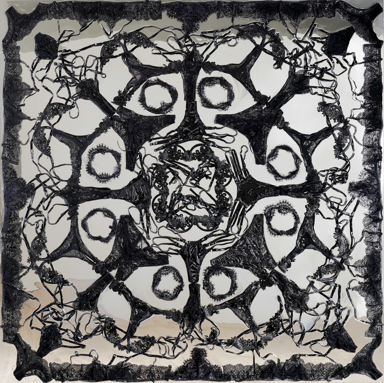 Dale Frank, Maggie Beer’s kitchen, 2019, Sexual intimate lingerie (black), epoxyglass on perspex, 200 x 200 cm