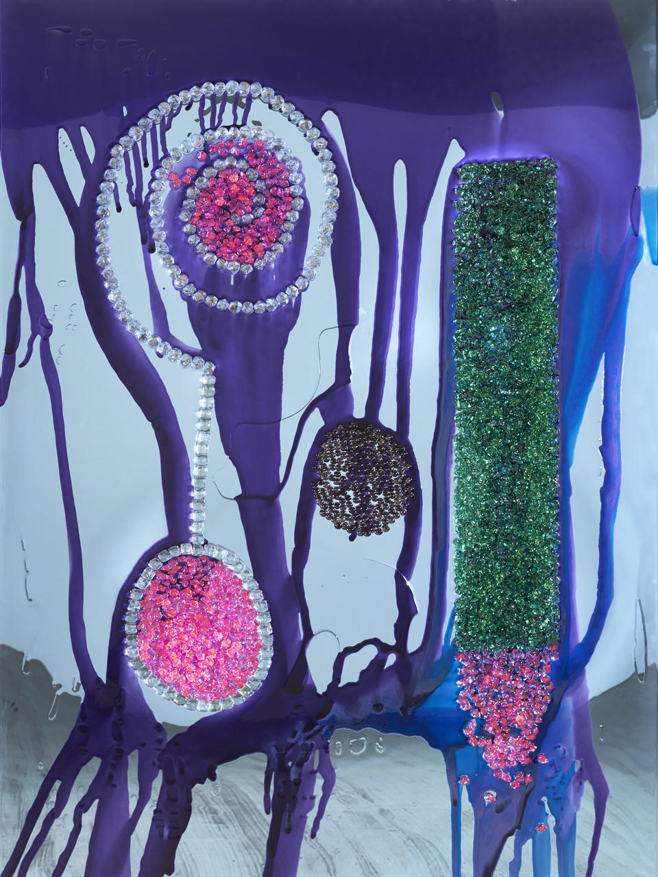 Dale Frank, Angular cheilitis, 2019, Acrylic cut crystals and gemstones, tinted varnish, epoxyglass on perspex, c