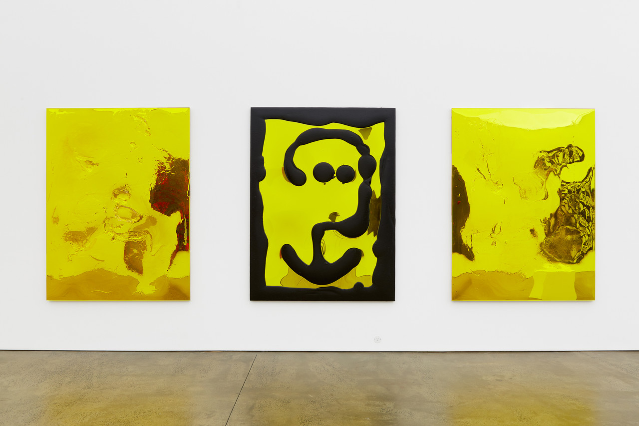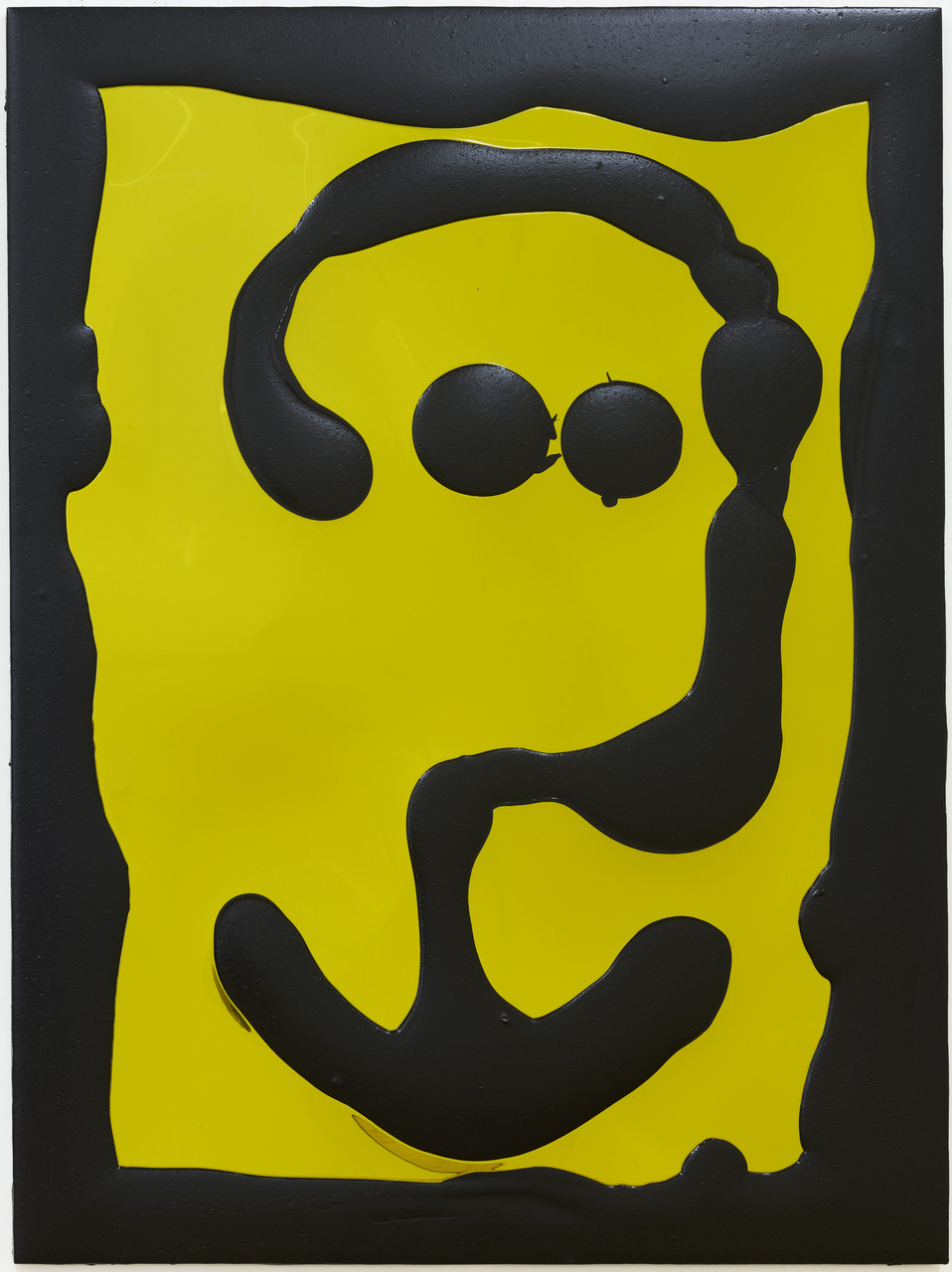 Dale Frank, Rubber face self portrait after getting close up glasses, 2019, Poured liquid bitumen rubber, epoxyglass on perspex, 200 x 150 cm