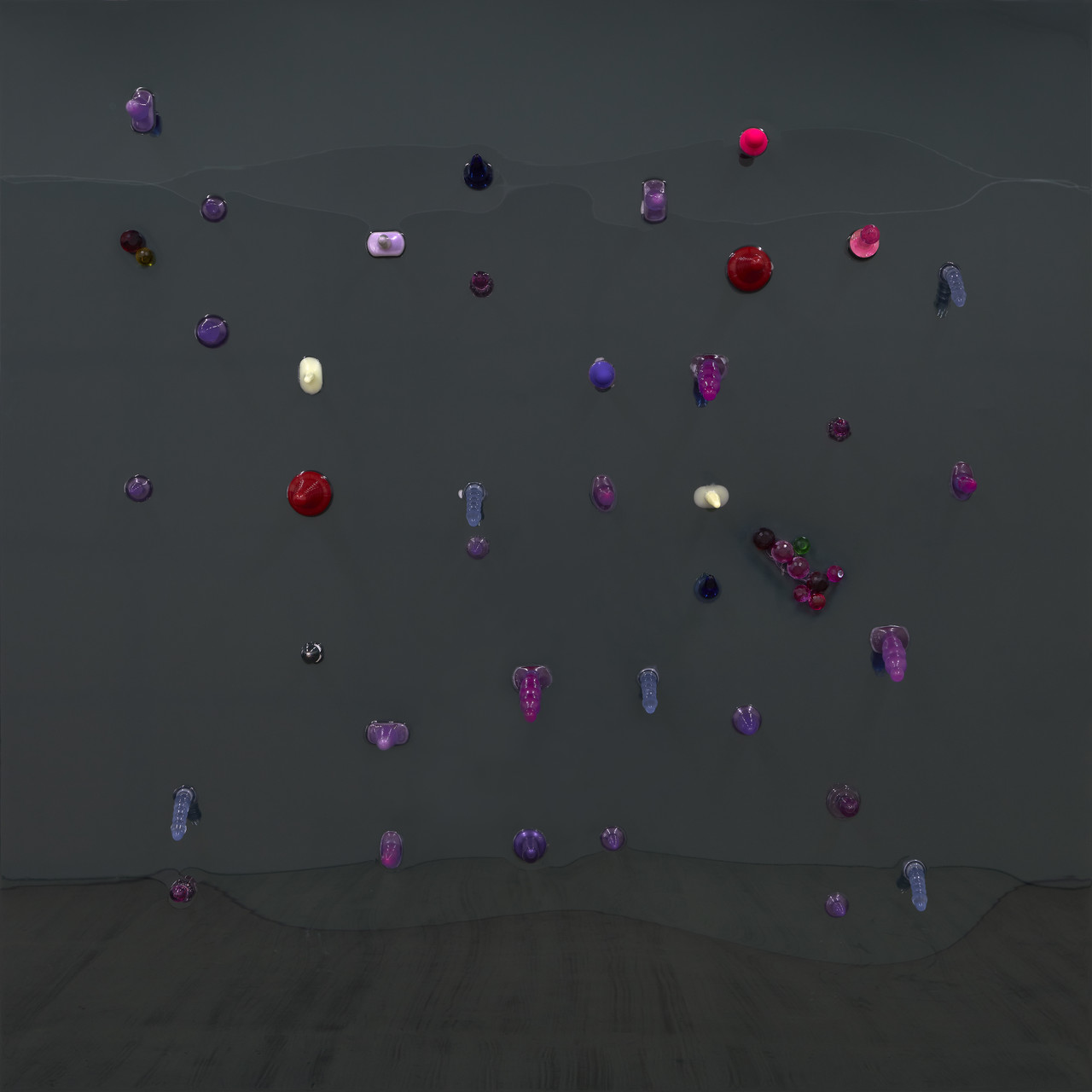 Dale Frank, View over Seoul, 2019, Coloured silicon and glass anal plugs and anal balls, epoxyglass on perspex, 200 x 200 cm