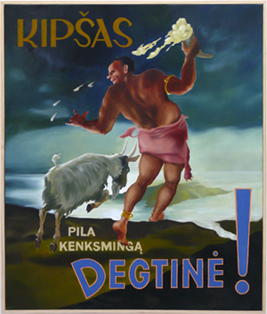 Danius Kesminas ( with Greg Richards), Kipsas pila kenksminga degtine (The devil pours malicious moonshine), after painting Petras Kelpolkas c.1930, 2011,