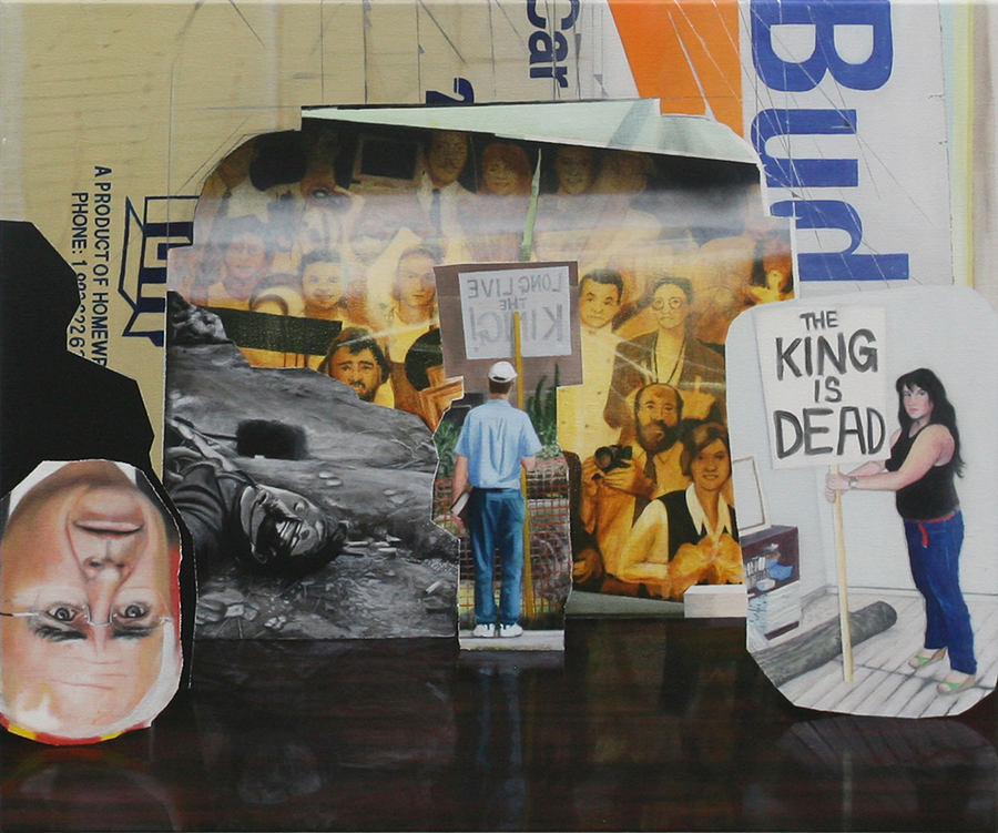 Vacuum, Kraft Mayonnaise buckets, canvas, acrylic paint, lead pencil,