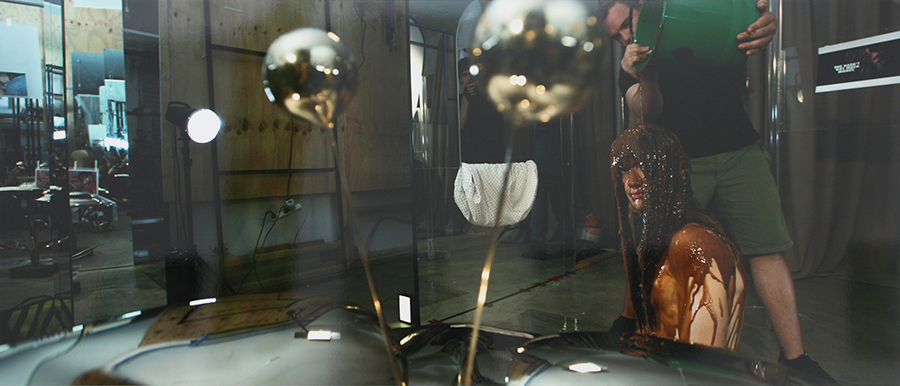 Acrylic on two people engaging in sex in numerous positions directed by the artist in the