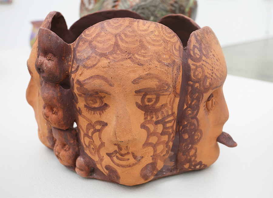 Mixed media textile, beads, buttons, sequins, acrylic, enamel, watercolour and found objects,