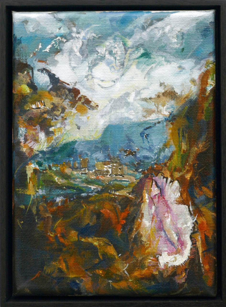 Irene Hanenbergh, Splintered Belluno Visions, 2018, Oil on canvas, 19.5 x 14.5 cm
