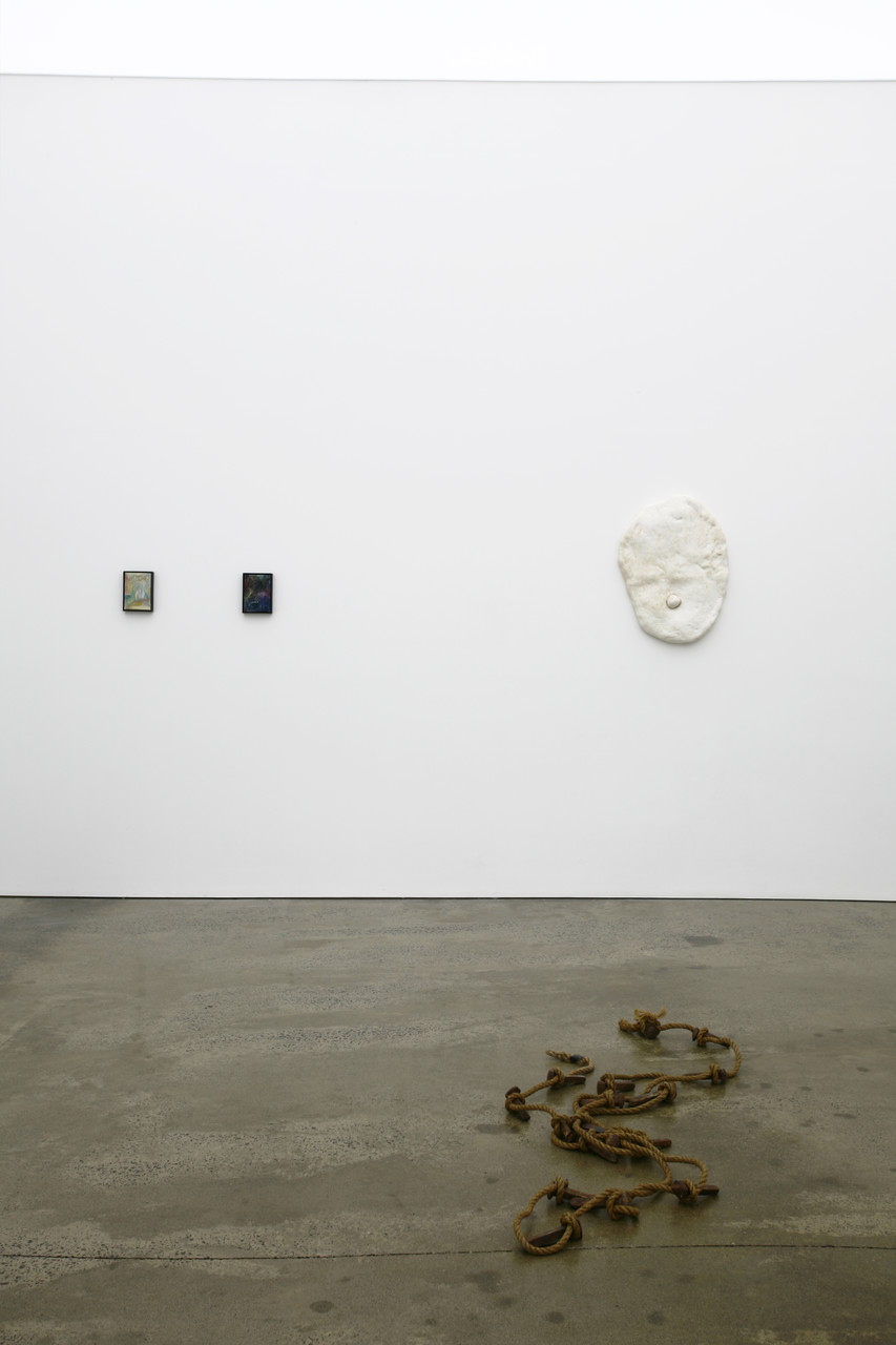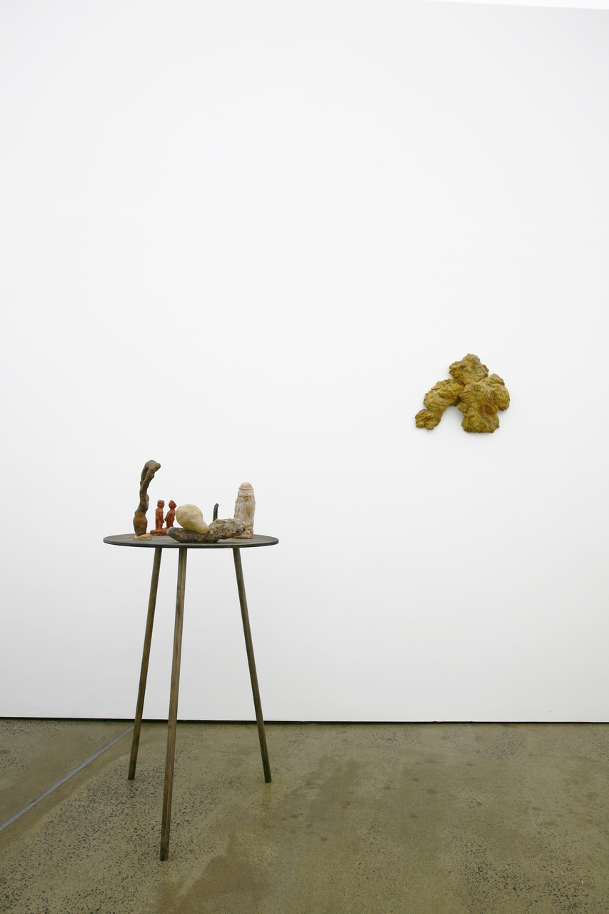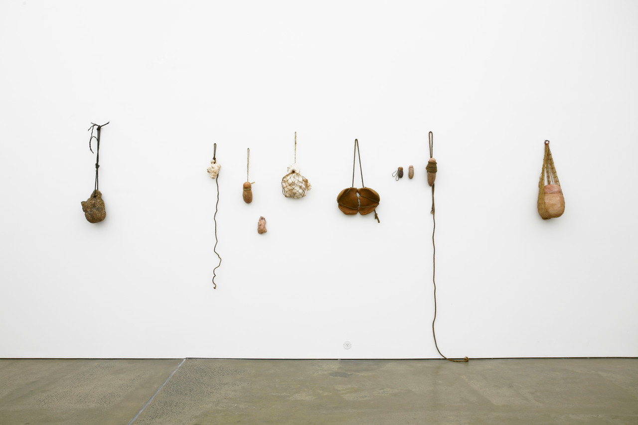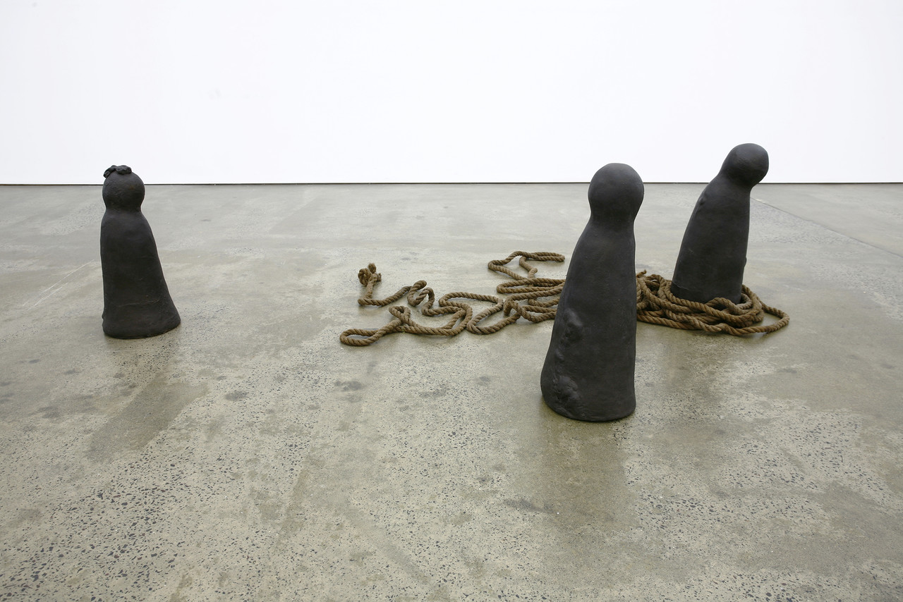 Various clays, wax, shellac, rope, 160 x 60 (overall, irregular), 55 x 14 x 15 cm (left), 63 x 14 x 12 cm (middle), 63 x 19 x 13 cm (right)