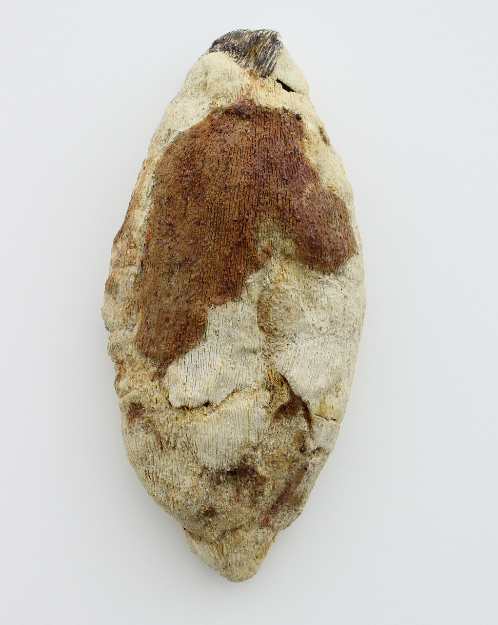 Naomi Eller, Shelled cocoon, 2018, Various clays, wax, shellac. 52 x 24 x 13 cm