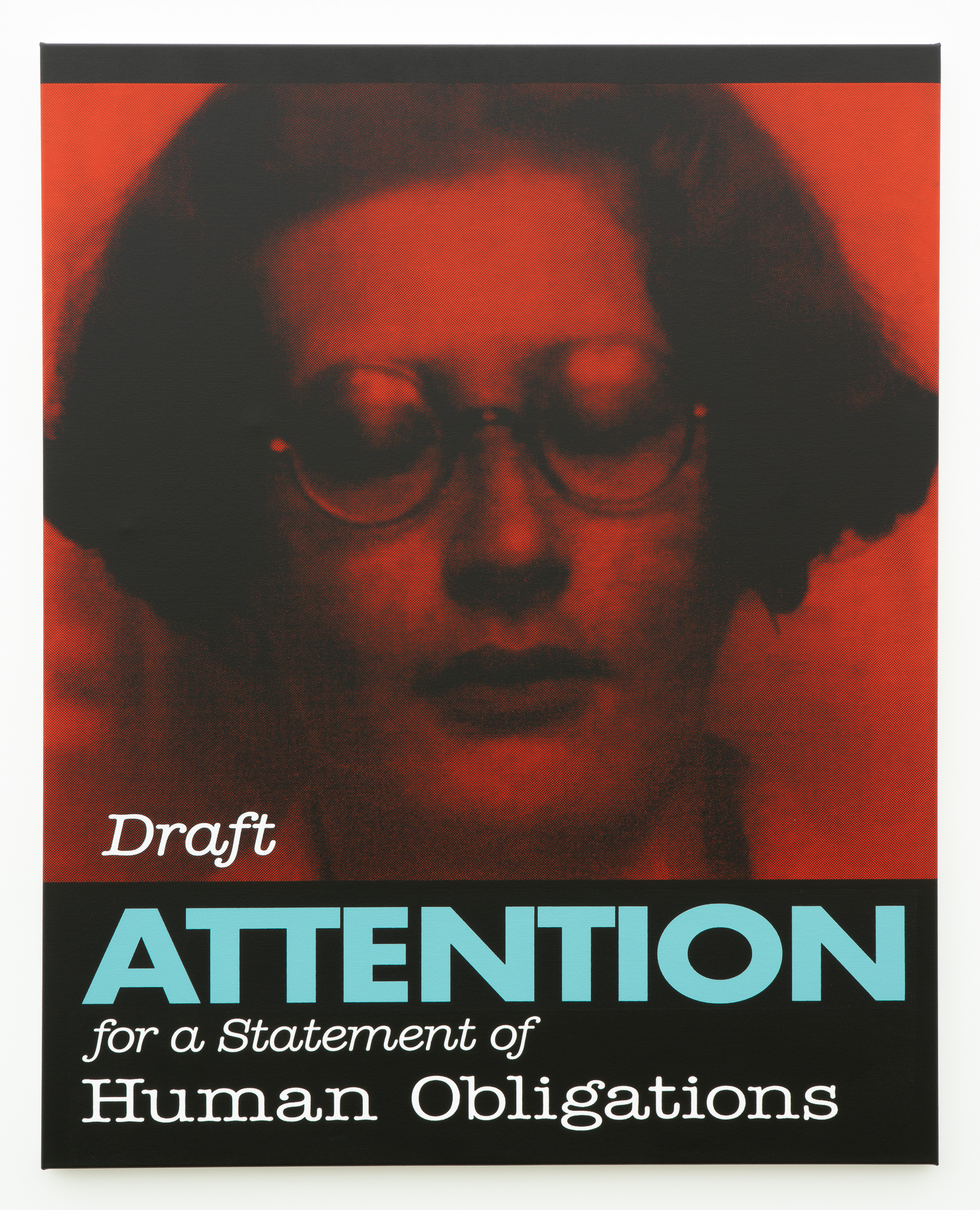 Burchill / McCamley, Attention (Simone Weil Project), 2021-22, silkscreen, synthetic polymer paint on canvas, 152 x 122 cm.