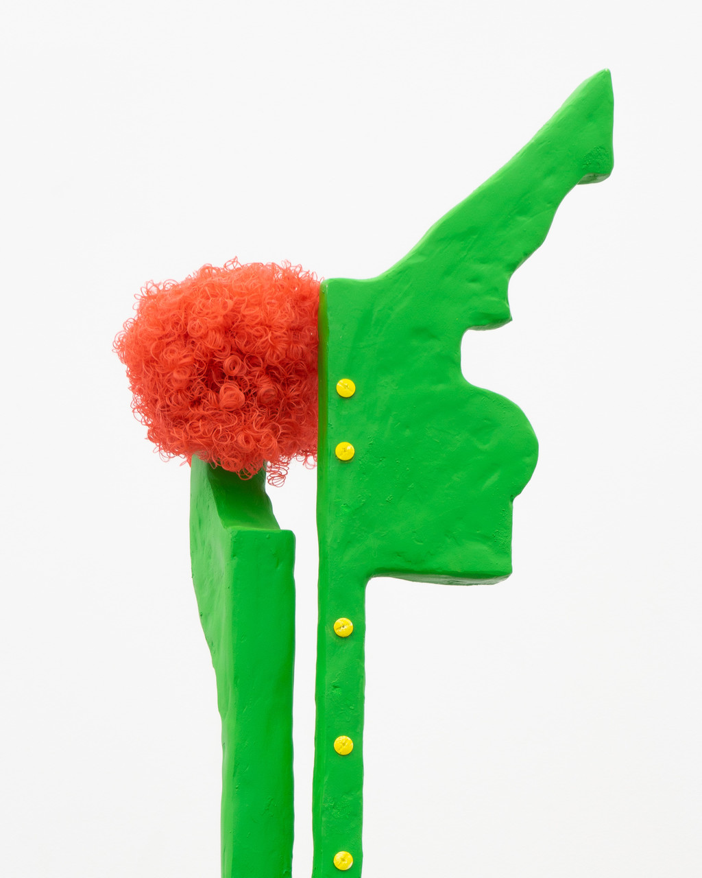 Nabilah Nordin, 'Horror Show', 2022. Wood, timber stain, epoxy modeling compound, spray paint, curly doll’s hair, screws, 245.5 x 49 x 26 cm.