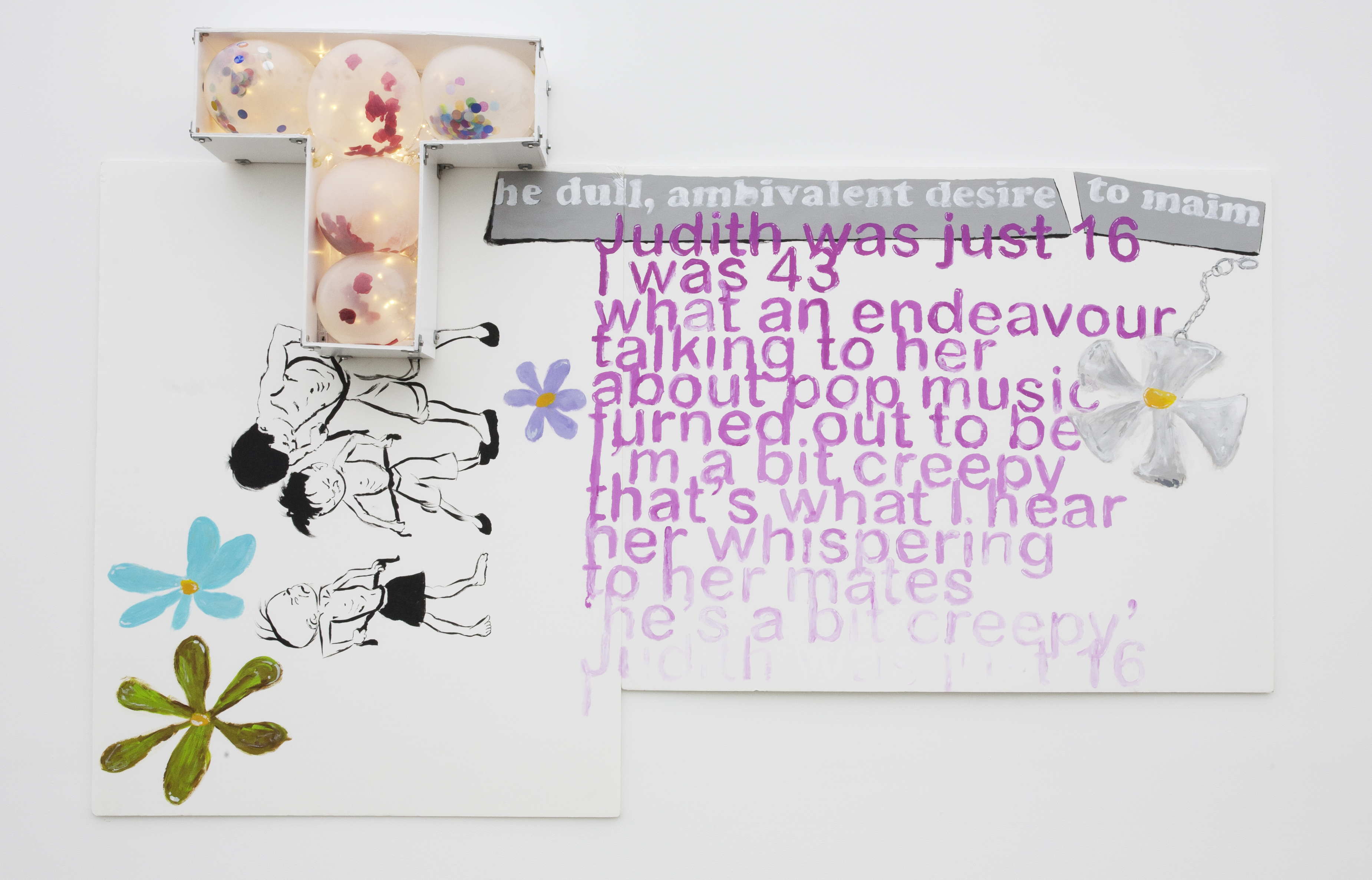 Acrylic on foamcore, fairy lights, batteries,