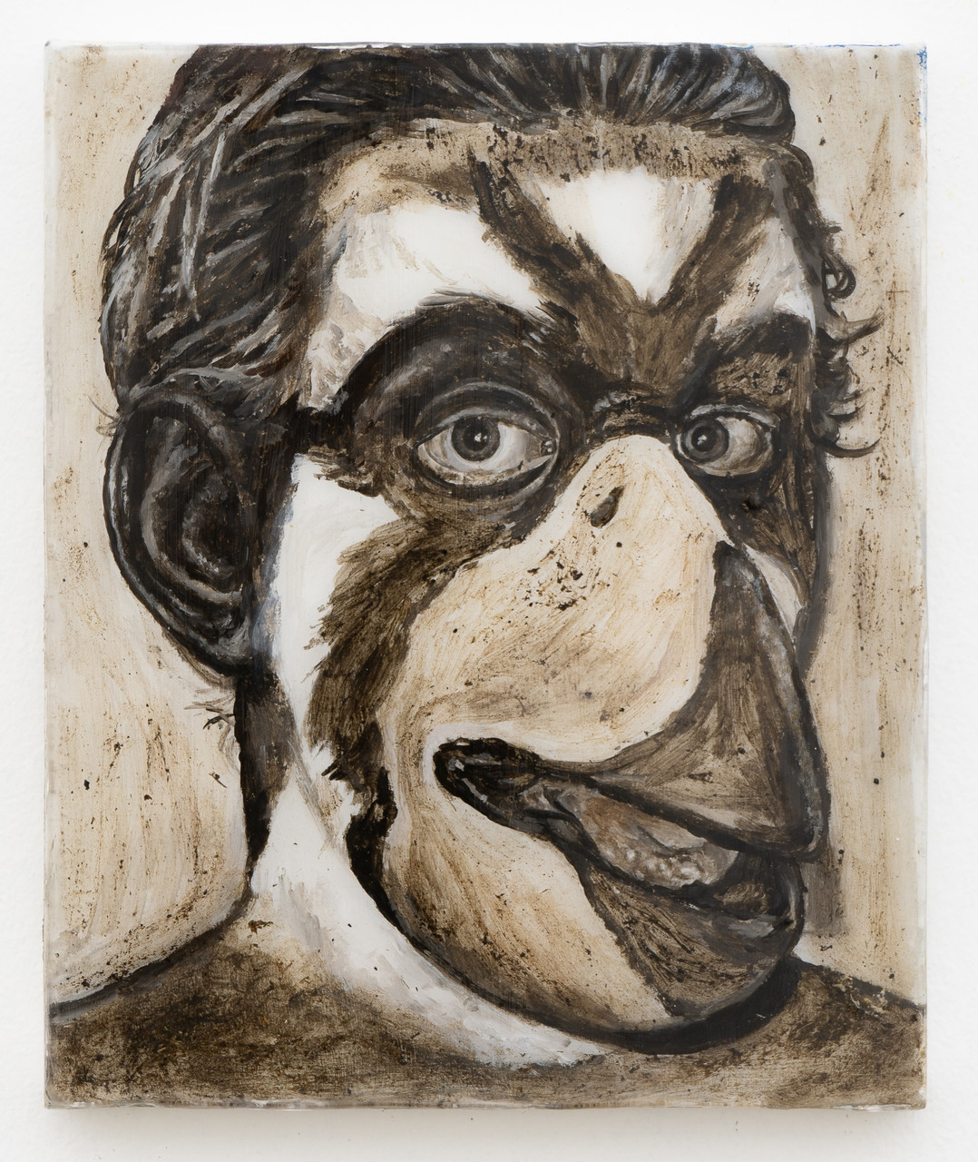 Rea Burton, 'Bird Man', 2022. Bird excretion, acrylic and epoxy resin on linen, 30 x 25 cm.