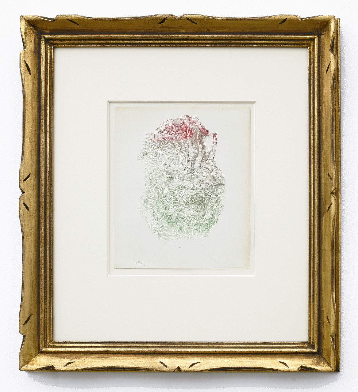 Hans Bellmer, The Hand Hat, 1947, Colour etching, 23 x 30 cm