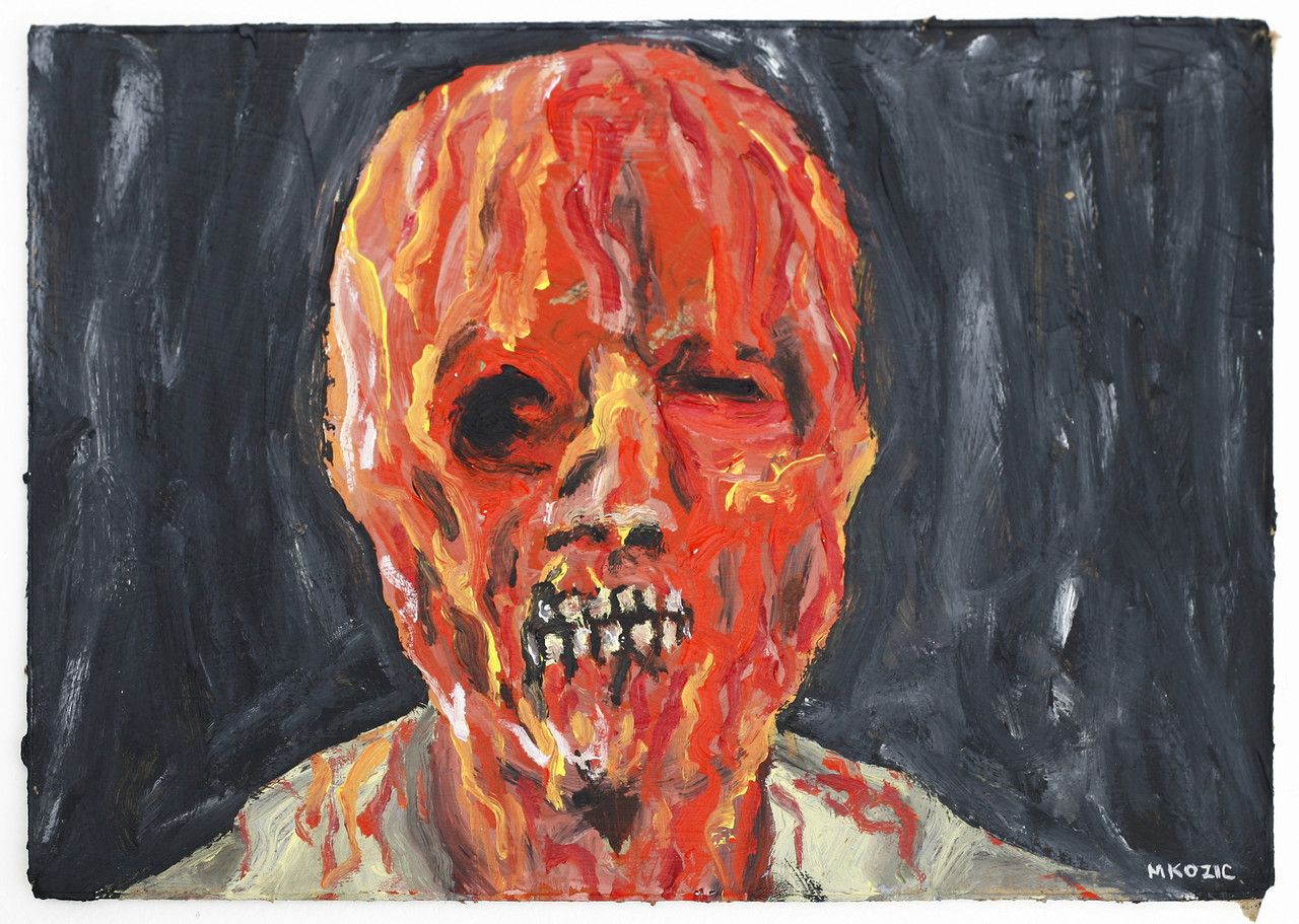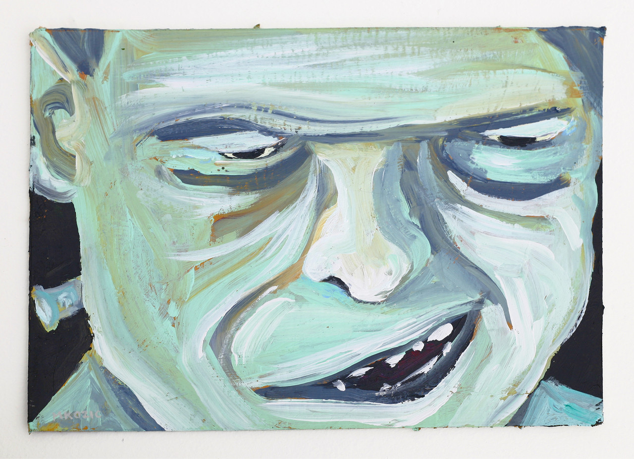Maria Kozic, Frankenstein Conquers The World, 2017, Synthetic polymer paint on cardboard, 21.5 x 22 cm