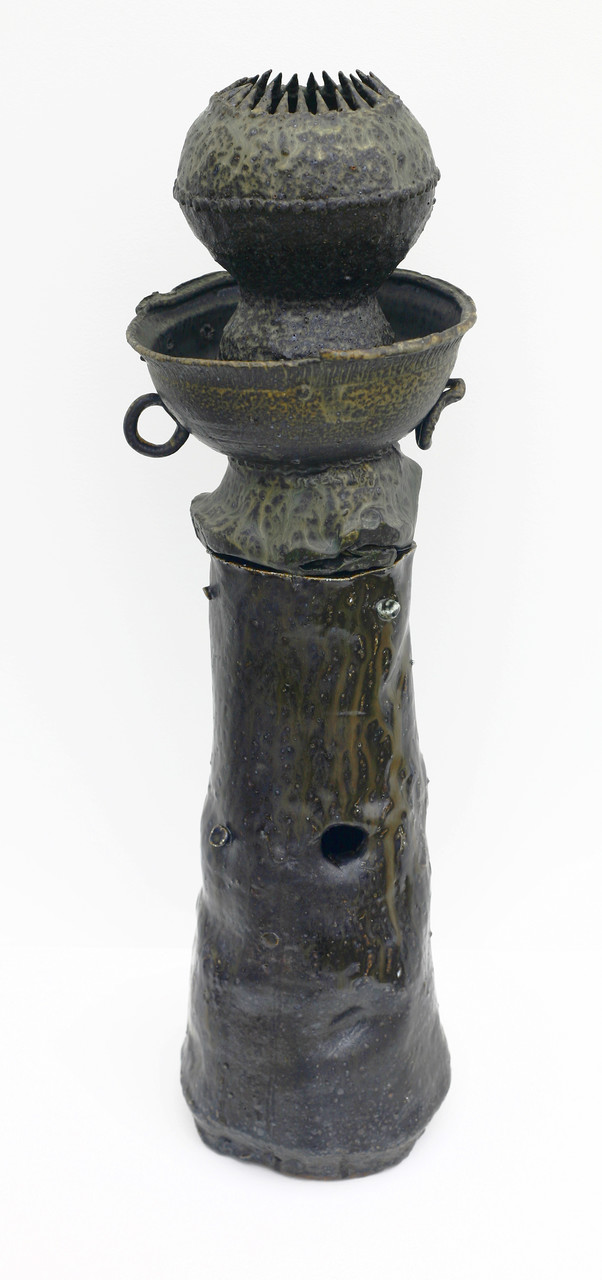 Laurie Steer, Torn the Rainbows, 2019, Wood-fired Wild Clay, Iron and Ash Glaze, 58 x 18 x 18 cm