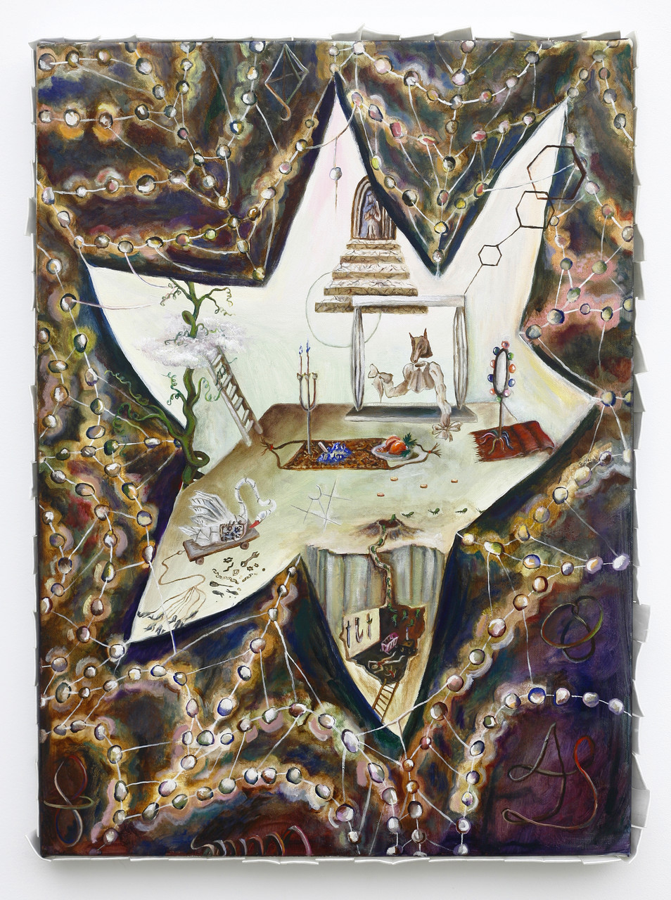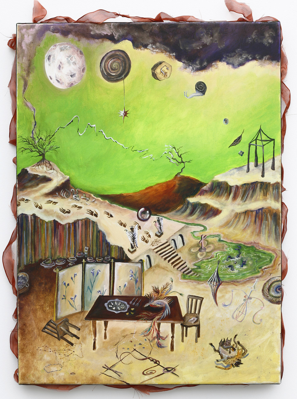 Matilda Davis, Looking out or looking in i am sitting in the doorway of the universe, 2019, Oil on canvas, synthetic trim,