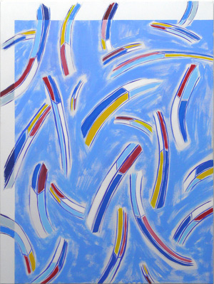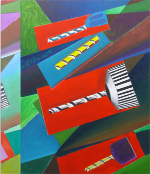 Trevelyan Clay, Drill Bits on Vermillion, 2011, Oil and acrylic on linen, 76 x 64 cm